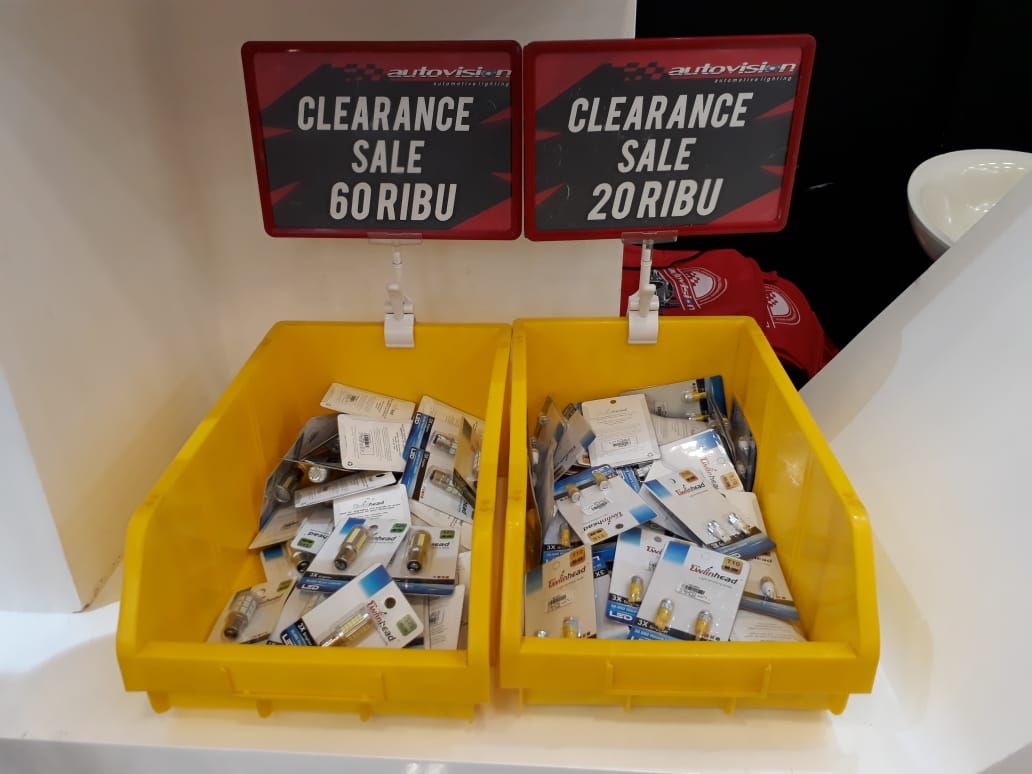 Buat yang ingin berburu lampu, Autovision gelar Clearence Sale dari mulai Rp 20.000 saja. Transaksi diatas Rp 1 juta, berhak memainkan 'Spin it up your wheel fortune' yang mendapatkan produk Autovision atau merchandise keren maupun voucher belanja.