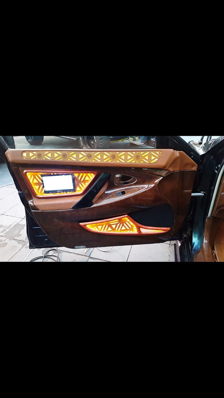 Mulai dari headlamp, foglamp, stoplamp hingga interior dan audio dikemas dalam satu tema besar modifikasi yang ciamik dan keren. Boy mengaplikasi Autovision HID Carbon dan Projector, Devil Eyes 360 derajat RGB Wi-Fi, signal turn lights sequential, foglight Projector Bi-Xenon HID Tuner.