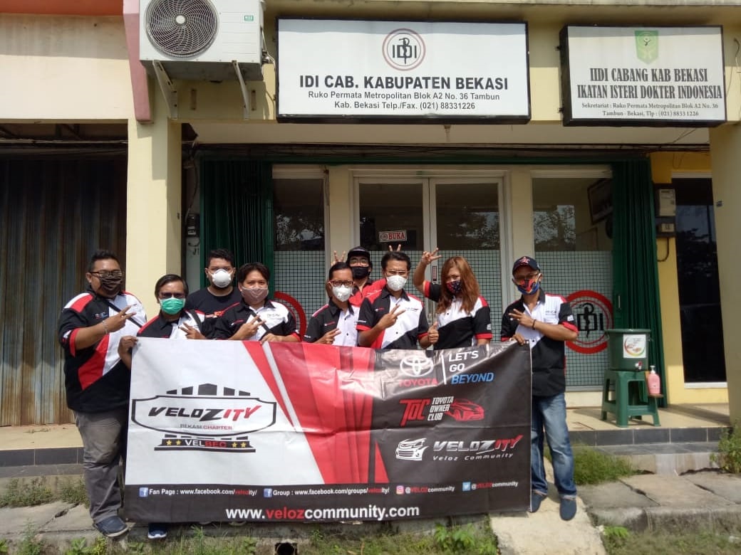 Sebagai wujud kepedulian terhadap para tenaga medis yang telah rela berjuang menjadi garda terdepan dalam melawan COVID-19, pada hari Rabu tanggal 10 Juni 2020 Velozity Bekasi Chapter (VELBEC) berkerja sama dengan PT. Remedi selaku sponsor menggelar kegiatan bakti sosial berupa penyerahan donasi APD (Alat Pelindung Diri) melalui perwakilan Ikatan Dokter Indonesia (IDI) Wilayah Cabang Kota Bekasi & Kabupaten Bekasi Jawa Barat.