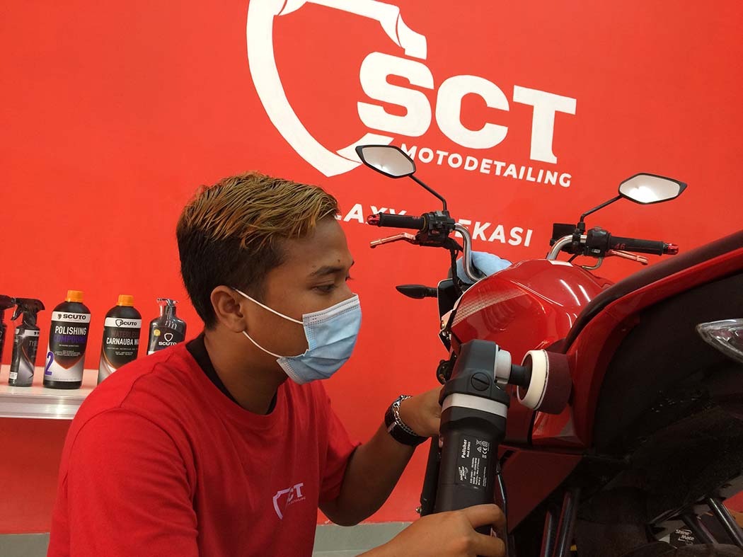 Roddy Raymond Halim sang owner dari SCT Galaxy menjabarkan bahwa outlet ini tidak hanya menawarkan laminating Nano Ceramic+ khusus sepeda motor saja, namun paket menarik lainnya pun terbilang lengkap. Mulai dari pencucian, poles dan detailing sepeda motor, hingga layanan Home Service.