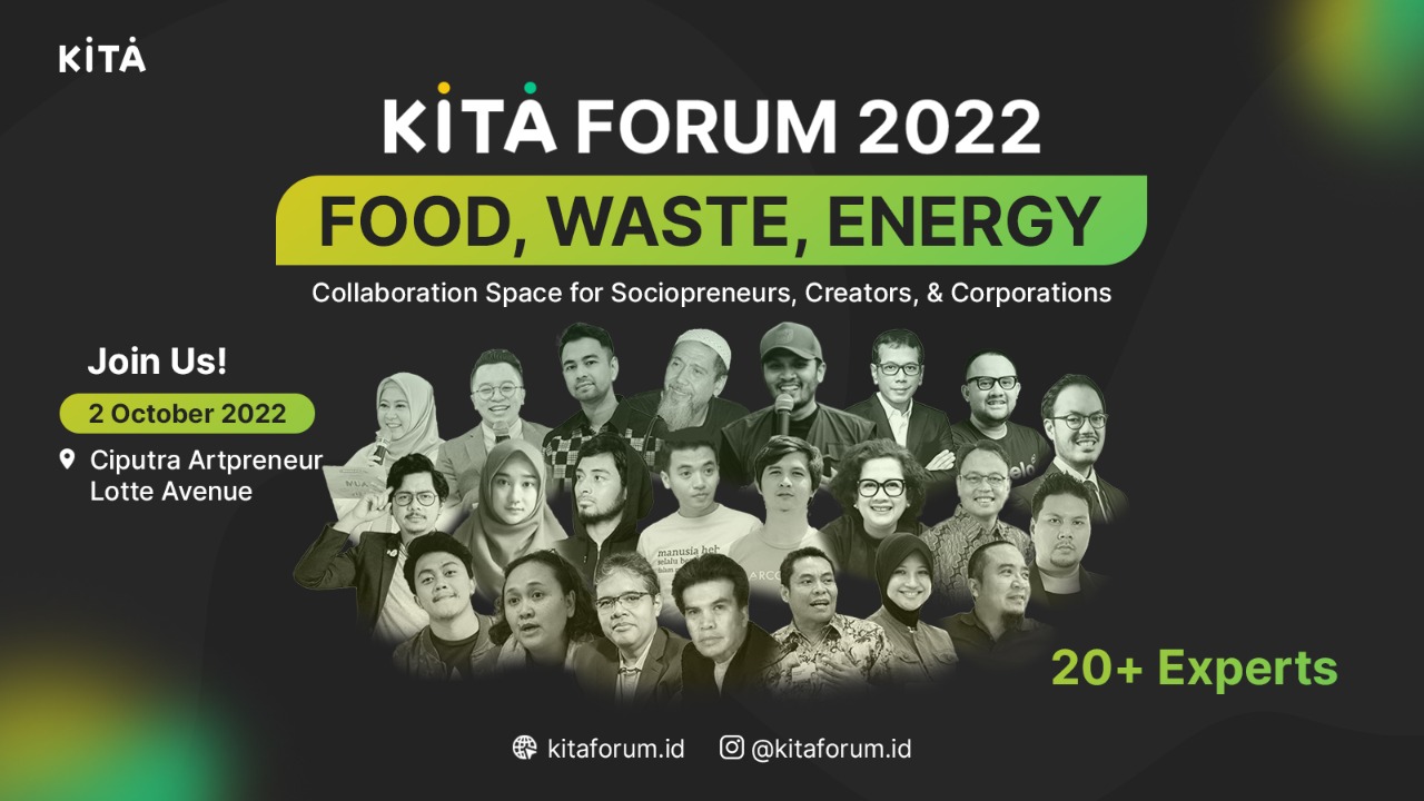 Tantangan-tantangan tersebut menjadi pemicu diadakannya KITA Forum 2022 yang akan mengetengahkan 3 isu utama: FOOD, WASTE, dan ENERGY. KITA Forum 2022 bertujuan untuk membuat ruang pertemuan dan kolaborasi bagi para social entrepreneur, content creators, dan korporasi. Kenapa? Karena ketiganya yang paling berpotensi untuk bekerja sama menjadikan tantangan sebagai kesempatan berkarya. Social entrepreneur menggunakan pendekatan bisnis untuk penuntasan problem sosial.