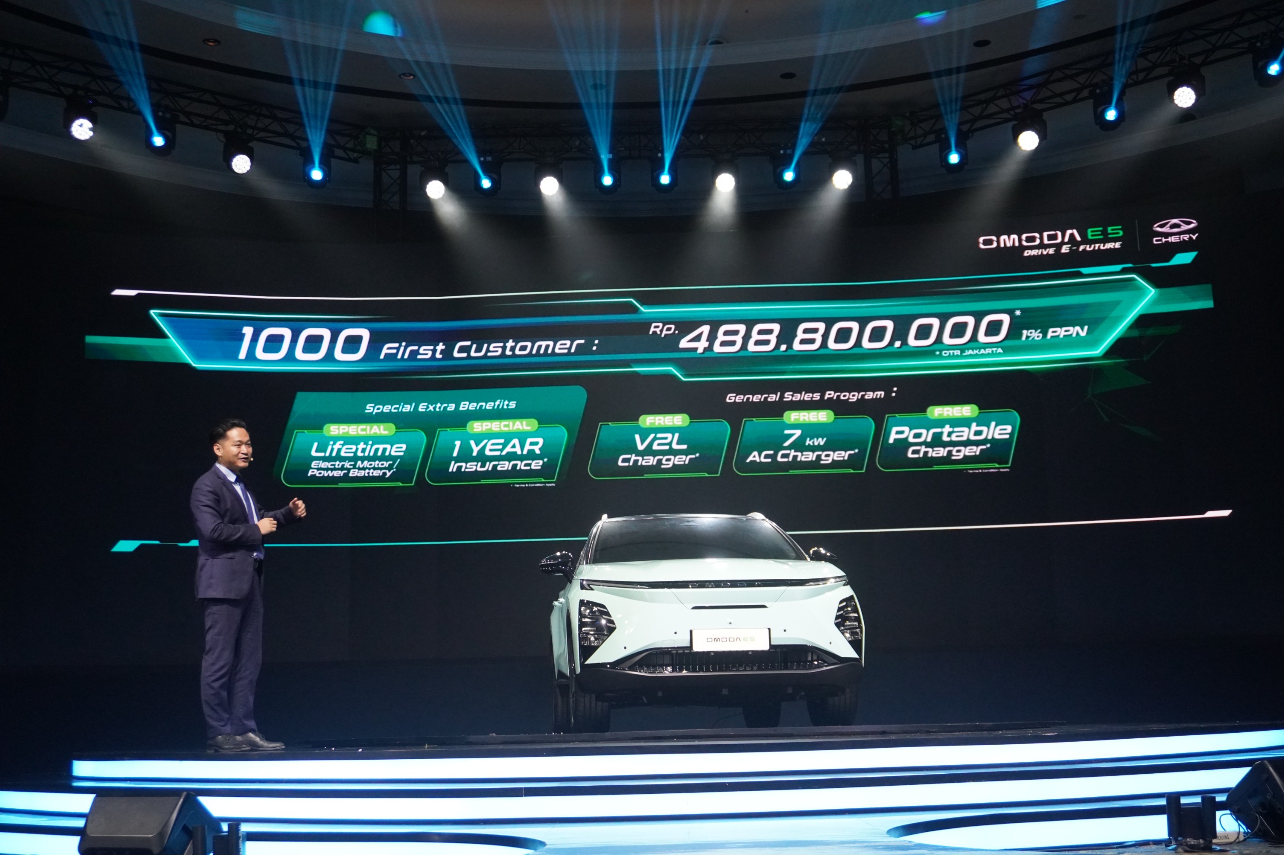 hery OMODA E5, kendaraan listrik bertipe SUV Crossover yang baru saja resmi diluncurkan oleh PT Chery Sales Indonesia minggu ini, mendapat respon yang tinggi karena harganya yang sangat kompetitif, yaitu Rp 498.800.000 termasuk ppn 1%. Antusiasme konsumen ini sesuai dengan harapan, dan oleh karena itu Chery mengapresiasi respon pasar ini dengan memberikan harga spesial untuk 1.000 konsumen pertama, yaitu Rp 488.800.000 termasuk PPN 1%. Apresiasi Chery kepada para konsumen ini merupakan bentuk komitmen agar mereka lebih mudah mendapatkan Chery OMODA E5, yaitu dengan memberikan garansi harga kepada 1.000 konsumen pertama tersebut, bahkan apabila kebijakan subsidi tidak diperpanjang.
