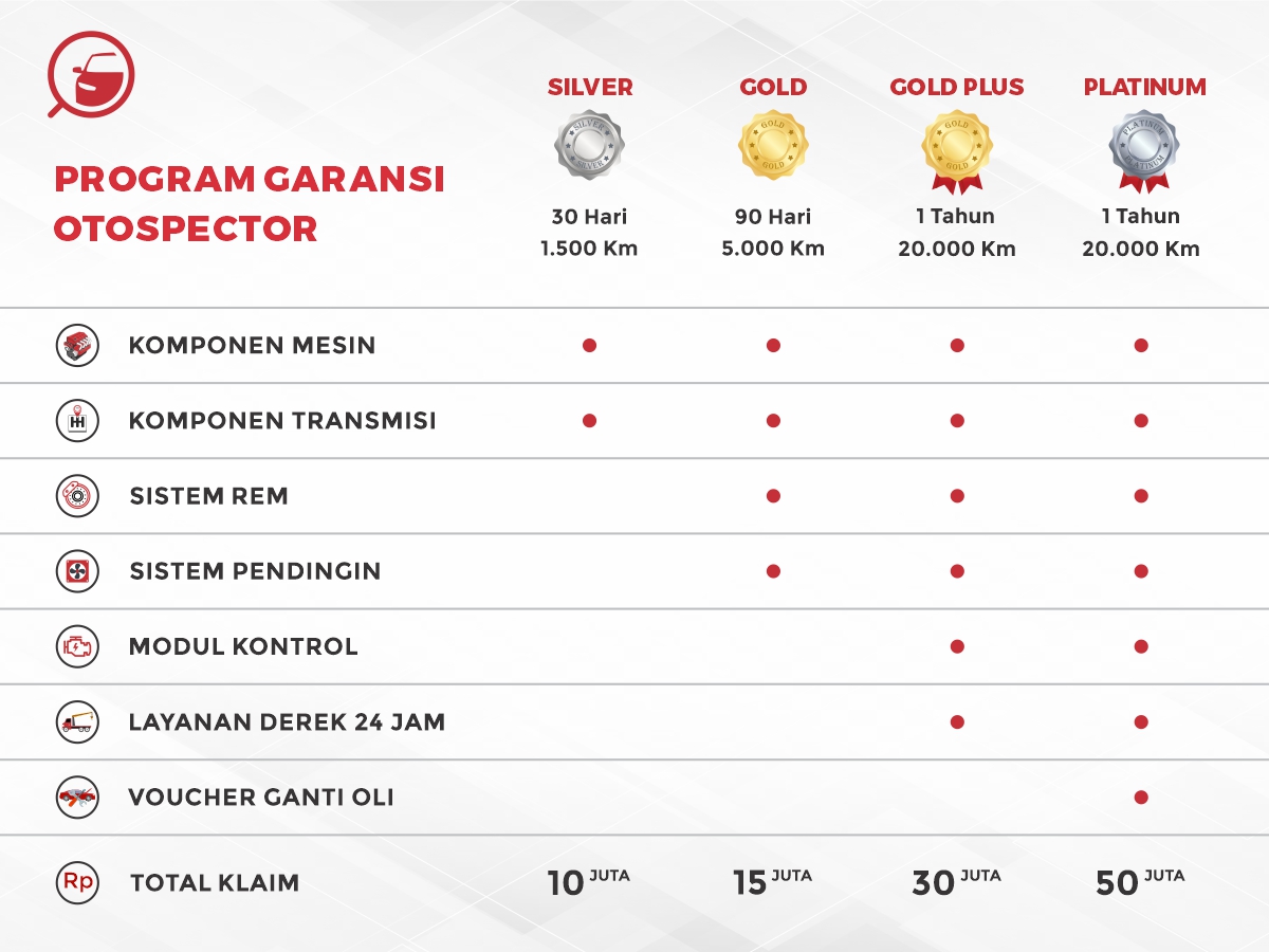 Nah, bicara program garansi mobil bekas ini, Otospector sajikan berbagai pilihan paketnya: